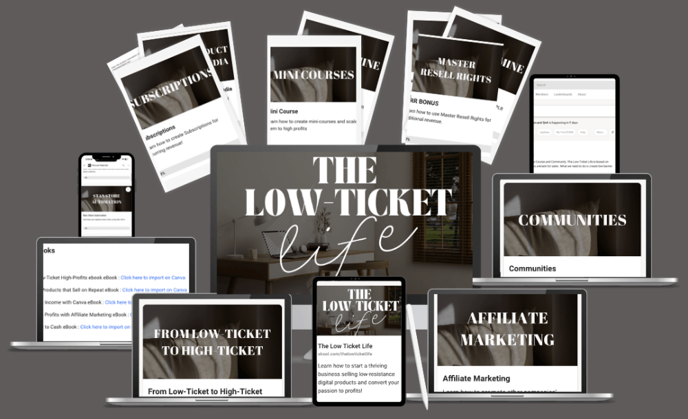 “The Low-Ticket Life” isn’t just another course; it’s a learning hub where you get everything needed to create and sell your own digital products.